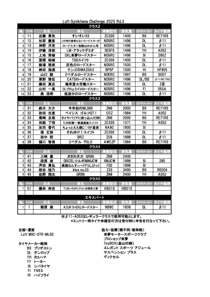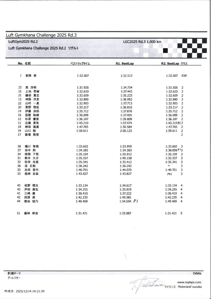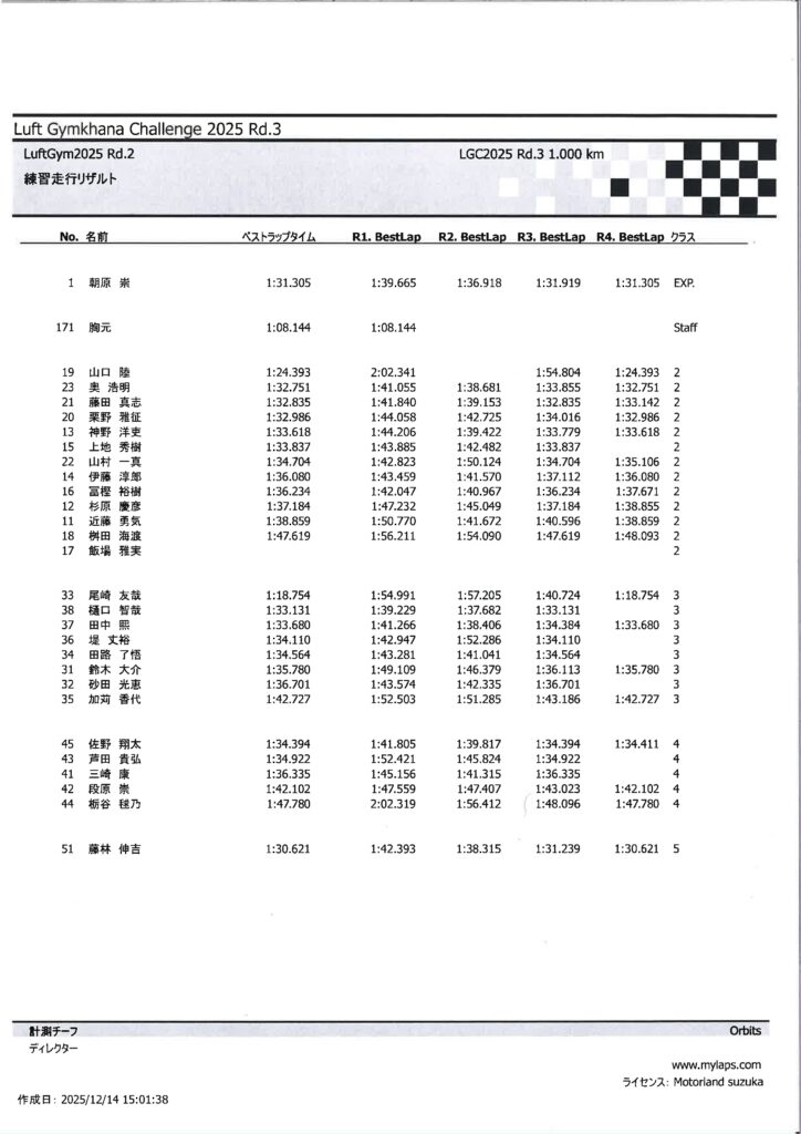 2025年12月14日(日)、2025 Rd.3も多くのエントリーを頂きありがとうございましたm(_ _)m